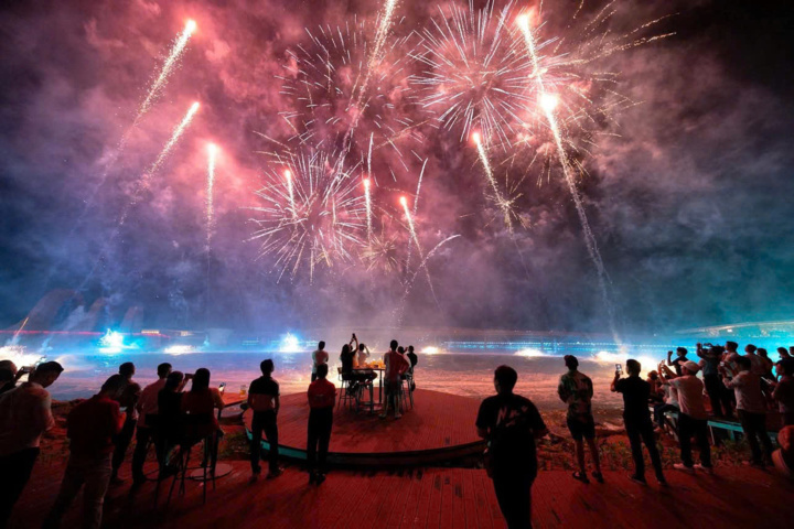 Một trong những công trình độc đáo bậc nhất châu Á là nhà hát Kiss the Stars. Đây là nơi diễn ra các show trình diễn công nghệ đa phương tiện trên biển, kết hợp giữa âm nhạc, ánh sáng, pháo hoa và mapping 3D cực kỳ ấn tượng.
